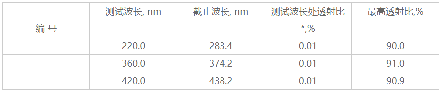 一、定值方法和溯源性根據JG1034-2008光譜光度計標準濾光器檢定規程,開機預熱30min后,以空氣作參比,測量標準物質的截止波長、測試波長處透射比及最高透射比,連續測量3次,取3次測量的平均值作為測量結果。標準物質量值溯源至中國計量科學研究院。