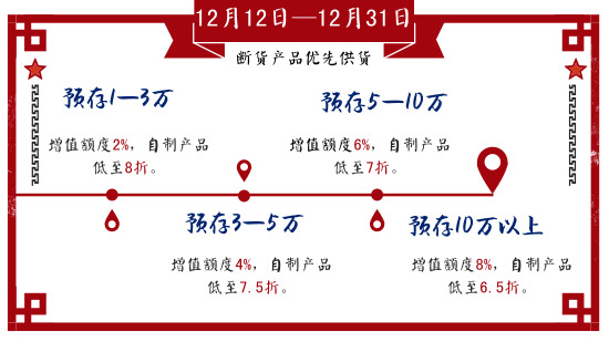 第三重:預(yù)存送溫暖:增值+優(yōu)惠折扣,比放在銀行都劃算,活動時(shí)間:12月12日至12月31日。