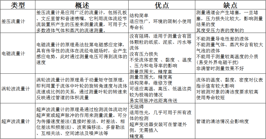 普天同創為大家整理四種常見流量計的優缺點,供參考: