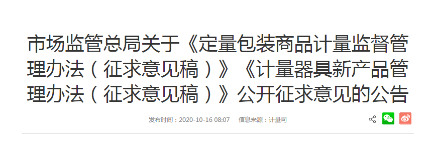 近日,市場(chǎng)監(jiān)管總局發(fā)布《計(jì)量器具新產(chǎn)品管理辦法(征求意見(jiàn)稿)》,向社會(huì)公開(kāi)征求意見(jiàn),反饋截止日期為2020年11月16日。